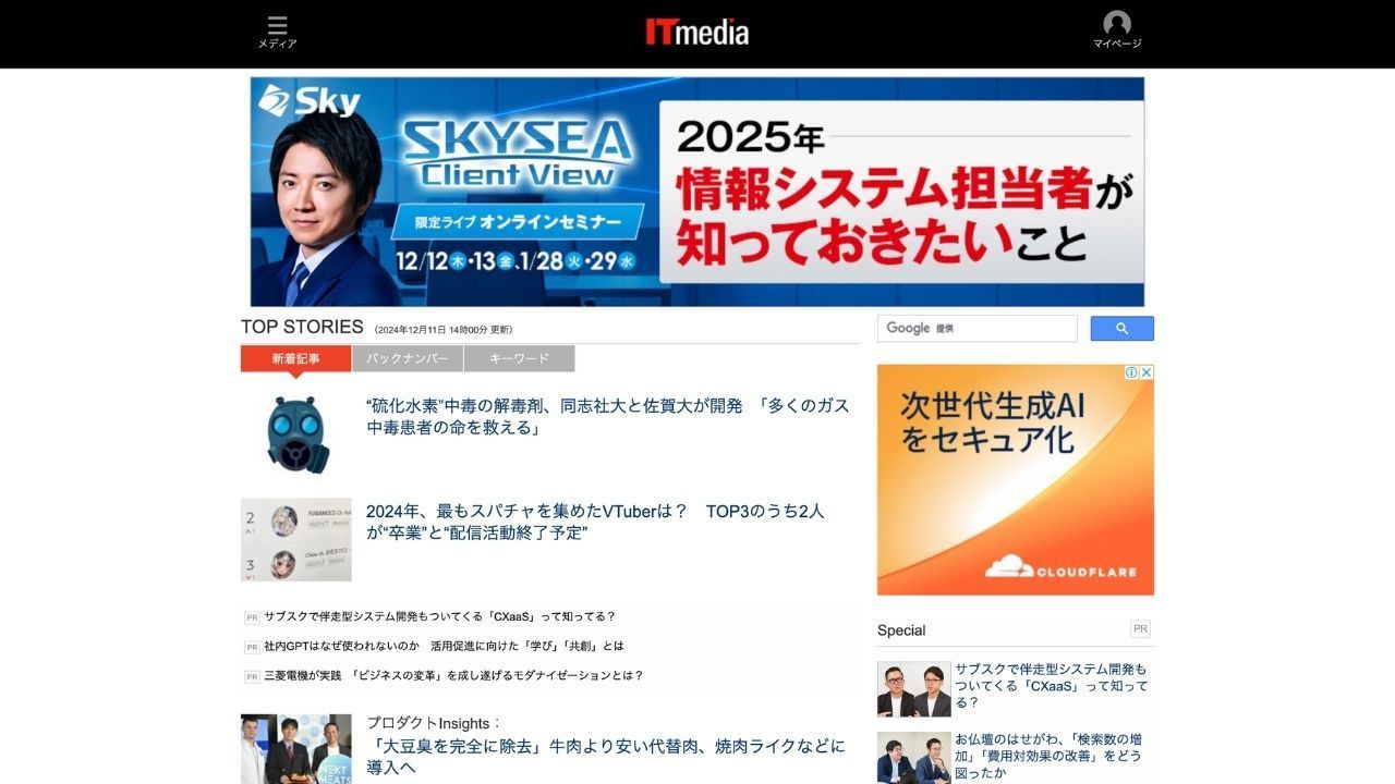 소프트뱅크 그룹의 ITmedia Inc.에서 운영하는 ITmedia는 일본을 대표하는 IT 뉴스 플랫폼 중 하나로, 포괄적인 콘텐츠를 제공합니다. 최신 IT 뉴스, 제품 리뷰, 기술적 분석, 비즈니스 분석 등 PC, 스마트폰 등 다양한 분야를 다룹니다.보안기업 솔루션 및클라우드 컴퓨팅심층적인 기사와 전문가 인터뷰로 유명한 ITmedia는 최신 기술 트렌드와 업계 동향에 대한 상세한 정보를 제공합니다. 일반 기술 애호가부터 IT 전문가 및 비즈니스 리더에 이르기까지 폭넓은 독자층을 대상으로 하는 ITmedia는 끊임없이 변화하는 기술 환경에 대한 최신 정보를 얻기에 이상적인 자료입니다.