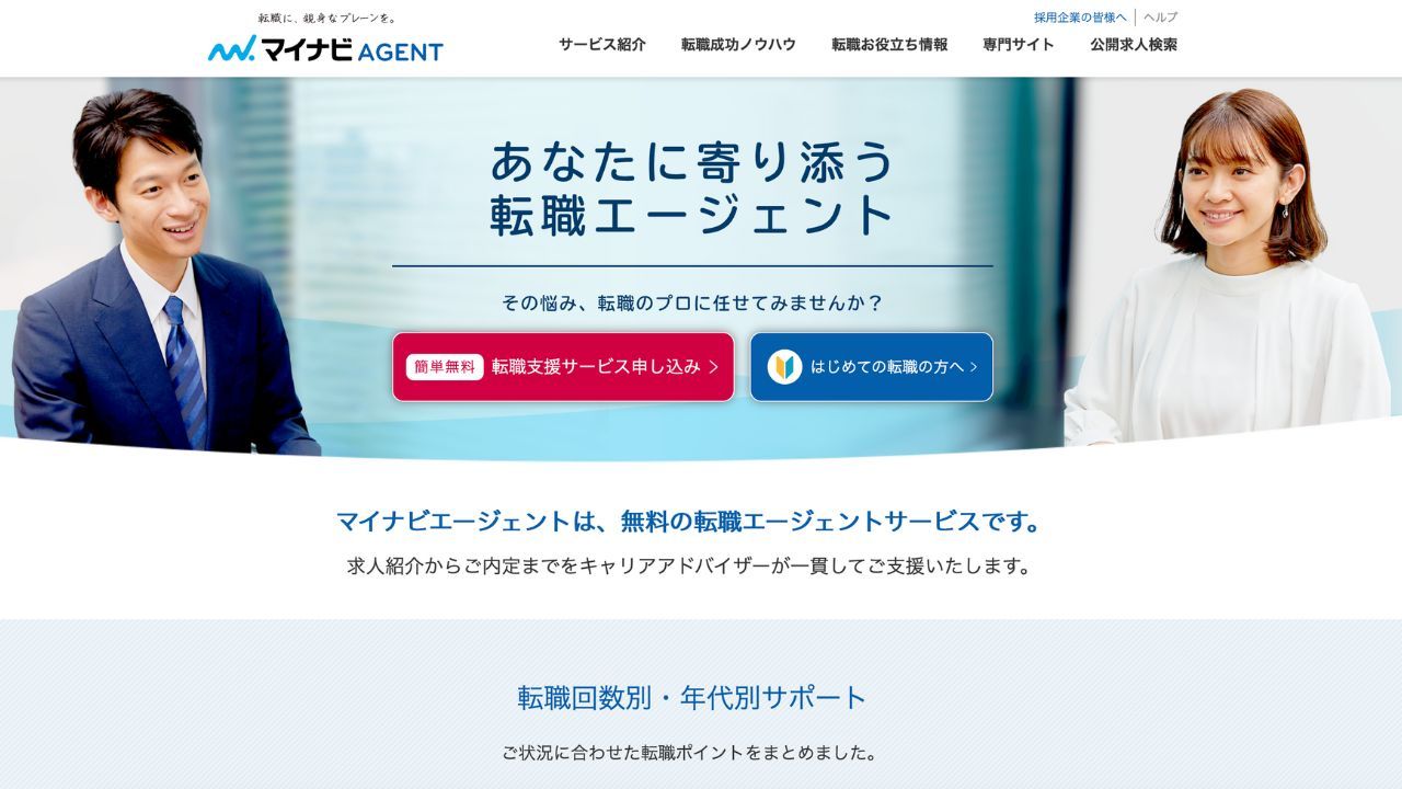 Mynavi Agent는 IT, 제조, 의료, 금융 등 다양한 산업 분야의 구인 정보를 제공합니다. 전문 커리어 어드바이저가 구직자의 기술과 선호도를 바탕으로 적합한 직책을 추천해 드립니다. 또한 이력서 수정, 면접 준비, 고용주와의 조건 협상 등 모든 서비스를 무료로 제공합니다.