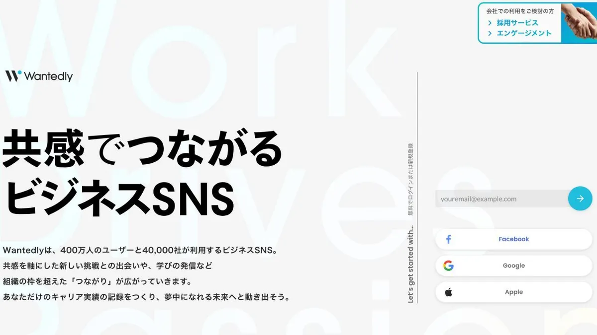 인기 있는 이유:Wantedly의 사명은 "일하는 것에 열정을 가진 사람들의 수를 늘리는 것"입니다. 가치관의 일치를 기반으로 하는 비즈니스 네트워킹 플랫폼으로서, Wantedly는 의미 있는 관계를 구축하고 새로운 기회를 탐색하고자 하는 진취적인 젊은 전문가들에게 큰 공감을 얻고 있습니다.