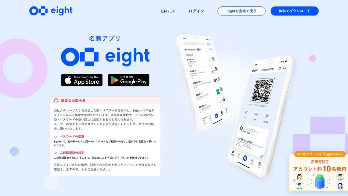 해결 효과:2012년 산산(Sansan Inc.)에서 개발한 에이트(Eight)는 일본에 깊이 뿌리내린 종이 사용에 대한 디지털 솔루션을 제공합니다.명함 문화이는 네트워킹 행사 이후에도 연락을 유지하는 데 따르는 어려움을 해결하고 사용자들이 의미 있는 전문적인 관계를 유지할 수 있도록 도와줍니다.