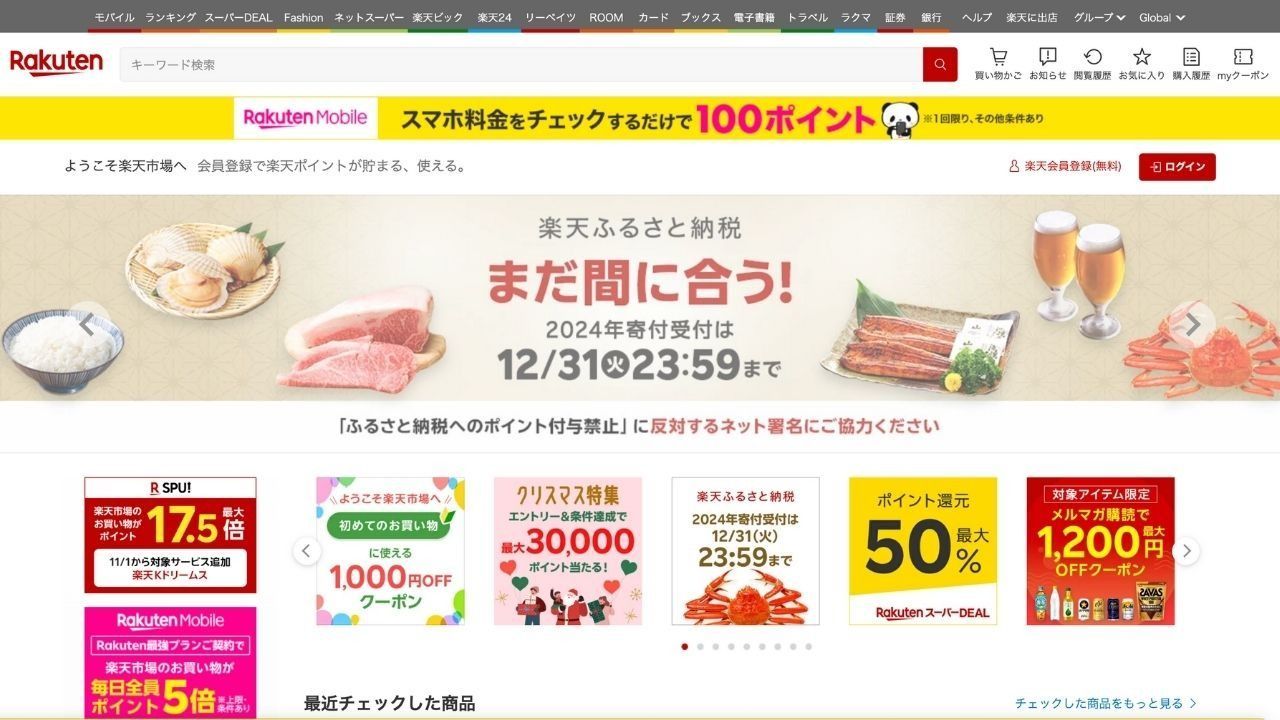 라쿠텐 이치바는 일본 최대 규모이자 가장 인기 있는 온라인 쇼핑 플랫폼 중 하나로, 생활 필수품부터 틈새 상품까지 다양한 제품을 제공하는 것으로 유명합니다. 라쿠텐 이치바의 성공을 이끄는 핵심 요소는 바로...라쿠텐 슈퍼포인트 시스템모든 구매에 대해 고객에게 포인트를 제공하여 재구매를 유도하고 고객 충성도를 높입니다. 플랫폼 구조는 다양한 제품을 제공하는 여러 개별 판매자로 구성되어 경쟁력을 높이고 소비자에게 폭넓은 선택권을 제공합니다. 또한 라쿠텐 카드, 라쿠텐 은행 등 다른 서비스와의 원활한 통합은 전반적인 쇼핑 경험을 향상시키고 더욱 편리하고 효율적인 서비스를 제공합니다.결제 옵션.이러한 상호 연결된 생태계는 라쿠텐 이치바의 매력을 더욱 강화하여 많은 일본 쇼핑객들이 찾는 명소로 만들었습니다.