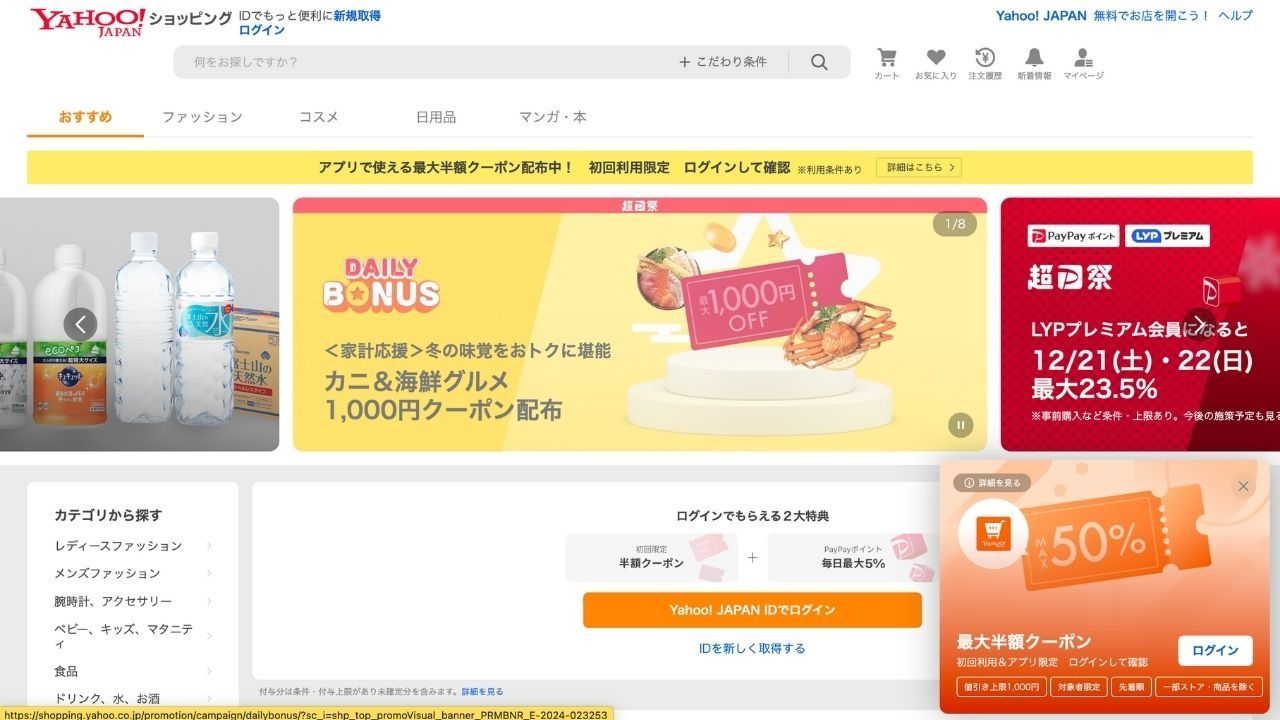 소프트뱅크 그룹의 계열사인 야후 쇼핑은 T포인트 시스템과의 연동 덕분에 일본 전자상거래 시장에서 주요 업체로 자리매김했습니다. 이 로열티 프로그램은 고객이 구매할 때마다 T포인트를 적립하고 사용할 수 있도록 하여 재구매를 유도하고 고객 유지율을 높입니다. 야후 쇼핑의 성공을 이끄는 또 다른 핵심 요소는 적극적인 마케팅 전략입니다.홍보 전략매력적인 캐시백 캠페인을 비롯한 다양한 혜택을 제공합니다.페이페이소비자의 구매를 유도하는 다양한 프로모션을 제공합니다. 이러한 프로모션은 폭넓은 제품군과 결합되어 야후 쇼핑이 충성도 높은 고객층을 확보하고 소비 지출을 늘리는 데 도움이 되었습니다. 보상 및 프로모션을 쇼핑 경험에 통합하는 플랫폼의 능력은 많은 일본 쇼핑객에게 매력적인 선택지가 되고 있습니다.