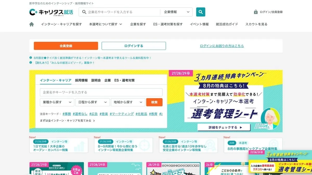 CareerTasu(캐리어타스 채용)는 사용하기 쉽고 콘텐츠가 풍부한 구직 플랫폼으로, 리크루트 그룹의 지원을 받고 있습니다. 학생들은 이곳에서 여러 회사를 비교하고 채용 행사 일정을 관리하는 등 모든 과정을 한 곳에서 편리하게 진행할 수 있습니다.