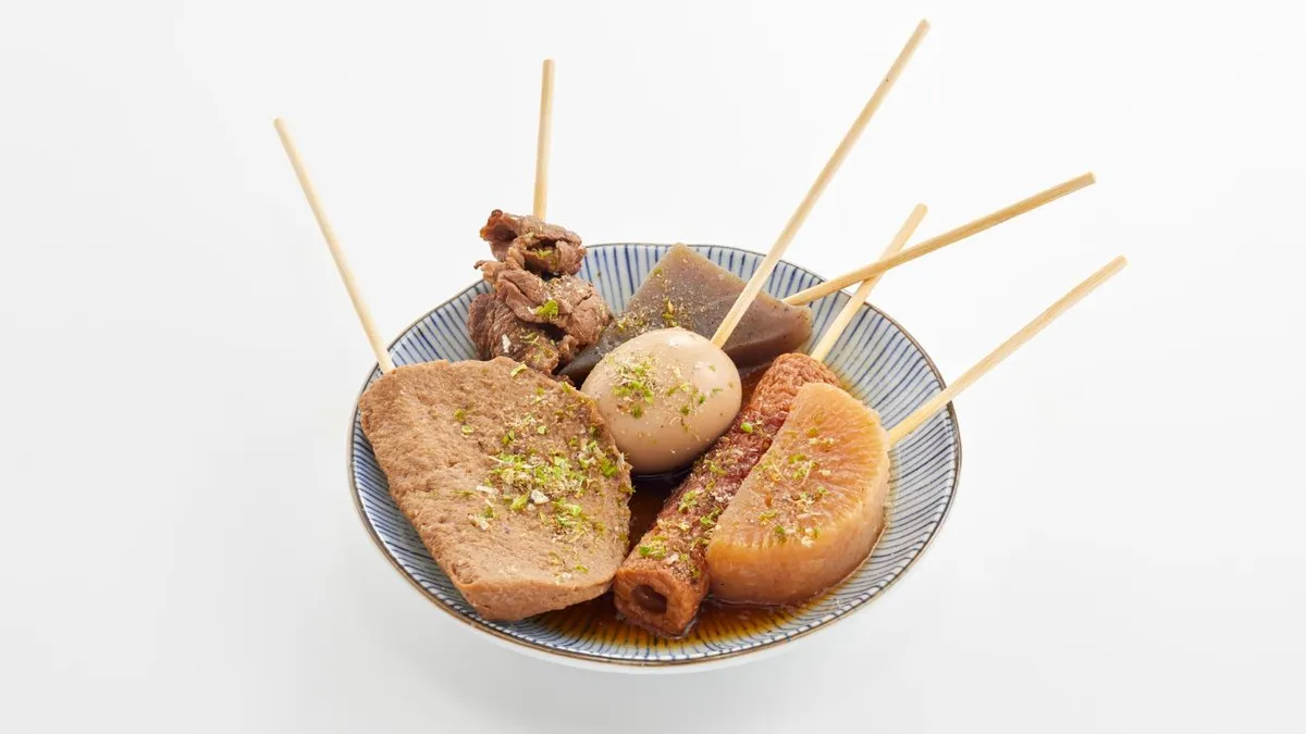 처럼 추위가 시작된다,오덴일본에서 가장 사랑받는 위안 음식 중 하나가 되었습니다. 이 찜 요리에는 다음과 같은 재료가 들어갑니다.무무, 삶은 달걀,곤약그리고 여러 가지 어묵을 모두 옅은 간장맛 육수에 끓여낸 요리입니다. 일본 전역의 편의점들은 이러한 메뉴를 적극적으로 활용하고 있습니다.오덴계절에 맞춰 김이 모락모락 나는 냄비 요리를 카운터 근처에 눈에 띄게 배치하여 손님들이 좋아하는 메뉴를 골라 따뜻하고 간편한 식사를 즐길 수 있도록 합니다. 저렴한 가격, 맞춤형 메뉴, 그리고 겨울을 떠올리게 하는 향수 덕분에 추운 날씨에 빼놓을 수 없는 외식 장소입니다.