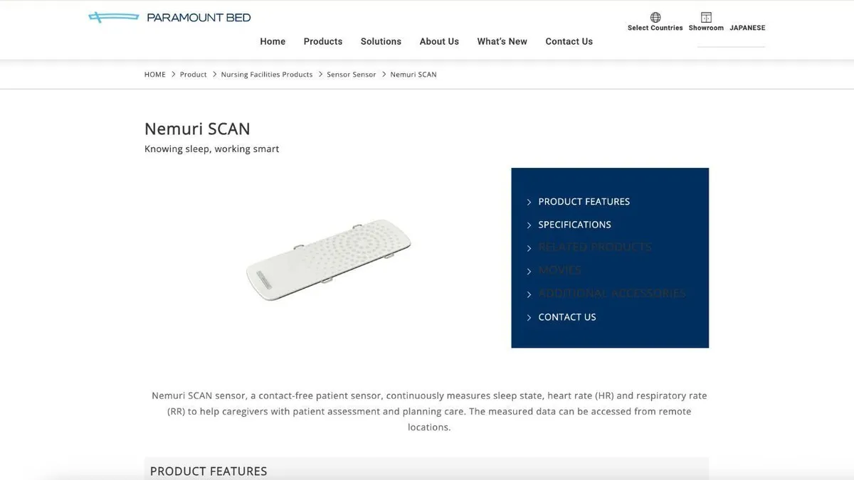 2. 파라마운트 베드 네무리 스캔: 가정에서 즐기는 의료 등급 수면 모니터링