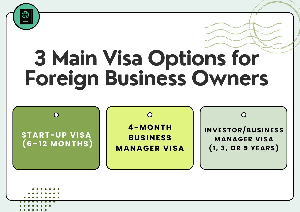- 비자 발급 여부는 사업 계획에 따라 결정됩니다.창업 비자든 사업 관리자 비자든, 사업 계획, 자금 조달, 사무실 설립은 완벽해야 하며 관련 서류를 모두 갖춰야 합니다.