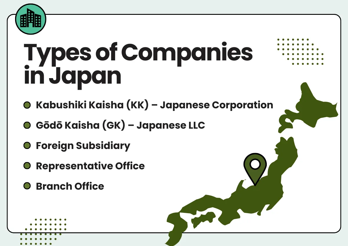 일본에서 사업을 하는 외국인 기업가들은 일반적으로 다섯 가지 주요 회사 유형 중에서 선택하는데, 각 유형은 목표, 위험 감수 능력, 장기 전략에 따라 장단점이 다릅니다.