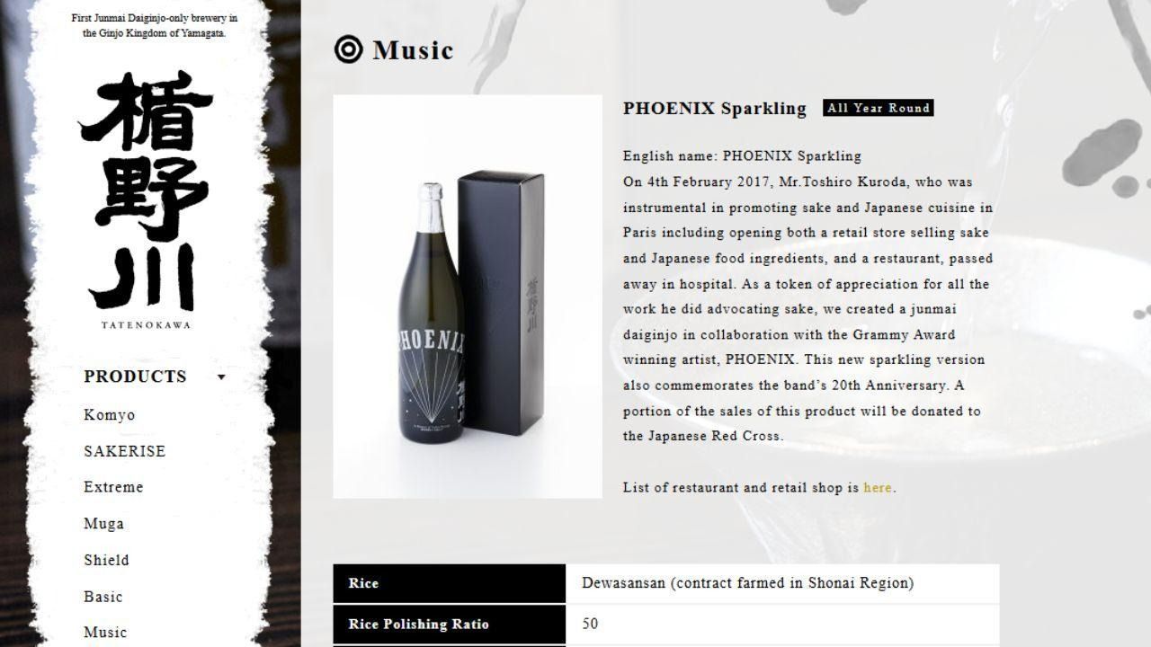 타테노카와와 프랑스 록 밴드 피닉스는 유럽 전역에 사케의 가치를 널리 알리는 데 헌신했던 구로다 씨를 기리기 위해 특별한 협업을 진행했습니다. 이 스파클링 사케는 준마이 다이긴조의 우아함과 상쾌한 탄산이 조화를 이루며, 은은한 단맛과 사과, 배와 같은 과일 향이 특징입니다.