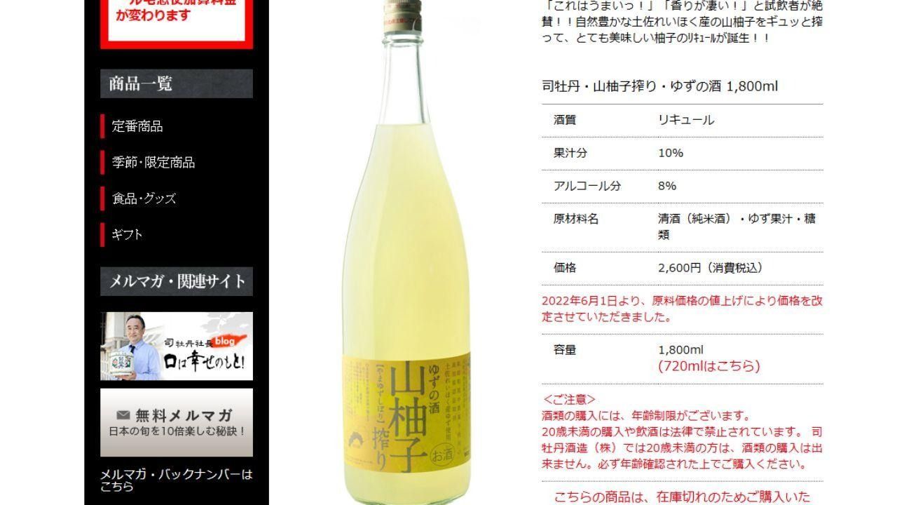 - 츠카사보탄 “유자”(유자 감귤주)