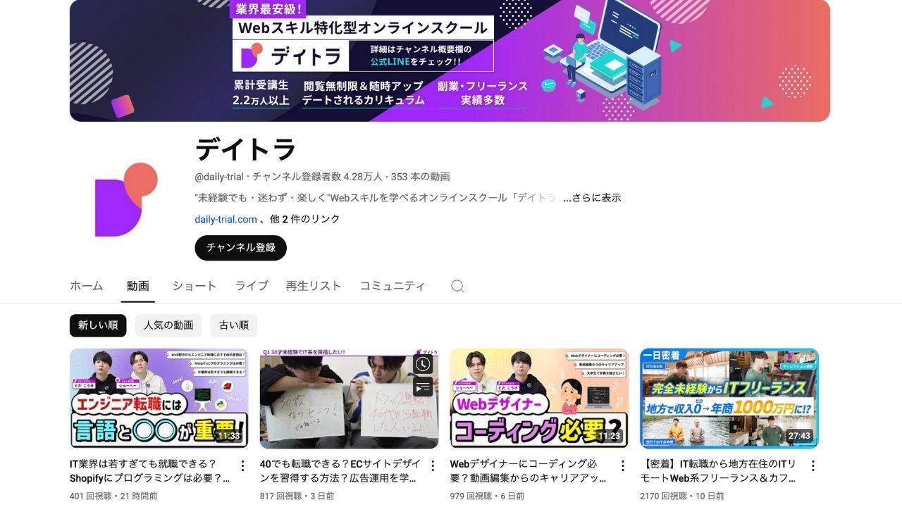 데일리 트라이얼(Daitra)은 웹 기술을 초보자도 쉽게 배울 수 있도록 도와주는 온라인 교육 기관의 콘텐츠를 제공하는 채널입니다. 이 채널은 성공한 프리랜서와의 인터뷰, 필수 프로그래밍 정보, 유용한 추천 자료 등 프리랜서와 학생들에게 귀중한 자료를 제공합니다.유용한 도구및 서비스. 시청자들은 성공 사례를 통해 영감을 얻을 수 있습니다.실습 학습여행 중에 동기를 유지하는 데 도움이 되는 팁들을 제공합니다.