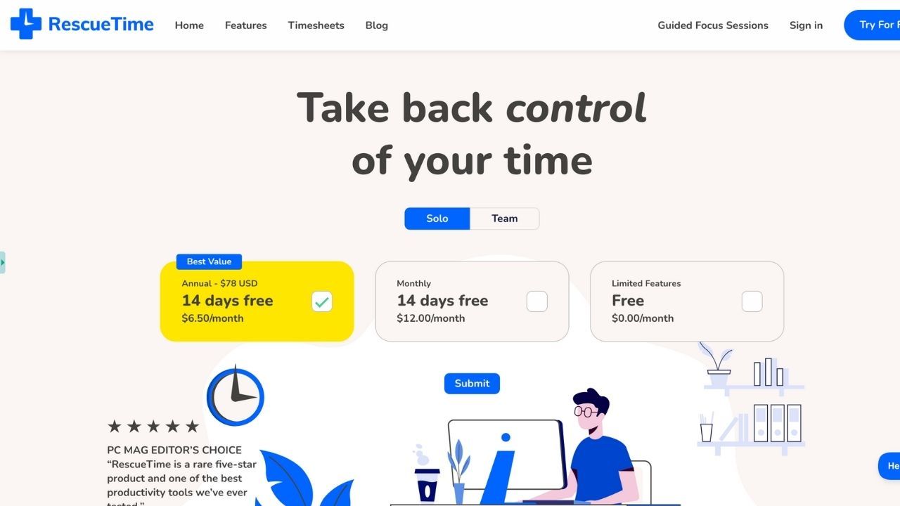 RescueTime은 창작 전문가, 원격 근무자, 그리고 집중력과 시간 관리 능력을 향상시키고자 하는 모든 사람에게 이상적입니다.