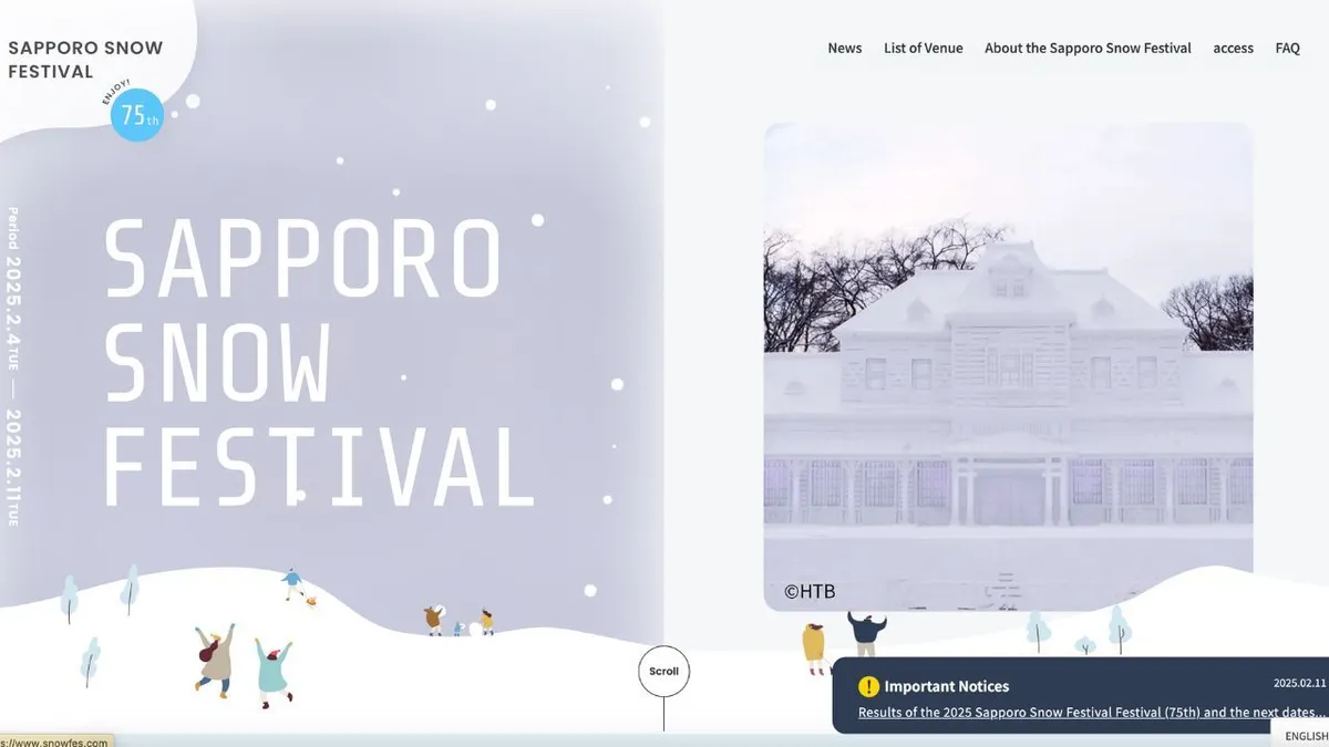 거대한 얼음과 눈 조각으로 유명한 삿포로 눈 축제는 전 세계에서 관광객을 끌어모읍니다. 이 축제는 1950년 삿포로 지역 고등학생 6명이 오도리 공원에 눈 조각을 만들면서 시작되었습니다. 1955년에는 인근에 있던 일본 자위대가 참여하여 최초의 대형 눈 조각을 선보였고, 이는 현재 축제의 대표적인 명물이 되었습니다. 눈부신 조명과 높이 솟은 눈 조각들은 장관을 이룹니다.예술 작품그것은 마치 꿈결 같은 축하 행사입니다.겨울 창의력.