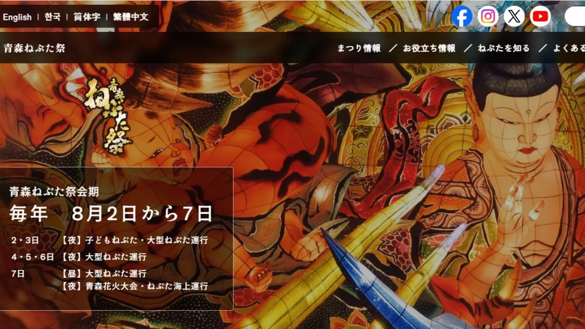 이 멋진여름 행사아오모리현은 신, 무사, 신화 속 생물들을 묘사한 거대한 조명 장식 수레로 유명합니다. 이 수레들은 밤에 무용수들의 반주와 함께 행진합니다.하네토) 그리고 활기 넘치는 북소리. 눈과 귀를 즐겁게 하는 축제이며 일본에서 가장 시각적으로 인상적인 축제 중 하나입니다.