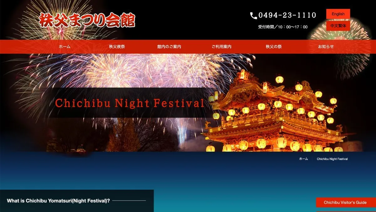 치치부 야행정 축제는 약 300년의 역사를 자랑하며, 교토의 기온 마쓰리, 기후현의 다카야마 축제와 함께 일본 3대 수레 축제 중 하나로 꼽힙니다. 12월 초에 열리는 이 축제에는 두 대의 거대한 수레를 포함하여 화려하게 장식된 여섯 대의 수레가 등장합니다.카사보코(꽃 양산을 든 수레)들이 전통 음악 리듬에 맞춰 거리를 행진합니다. 수레들은 등불로 밝혀져 거리를 행진합니다.겨울밤에는 웅장한 불꽃놀이로 절정을 맞이합니다.추운12월의 하늘. 불빛과 서리의 대비가 축제에 마법 같은 매력을 더합니다.