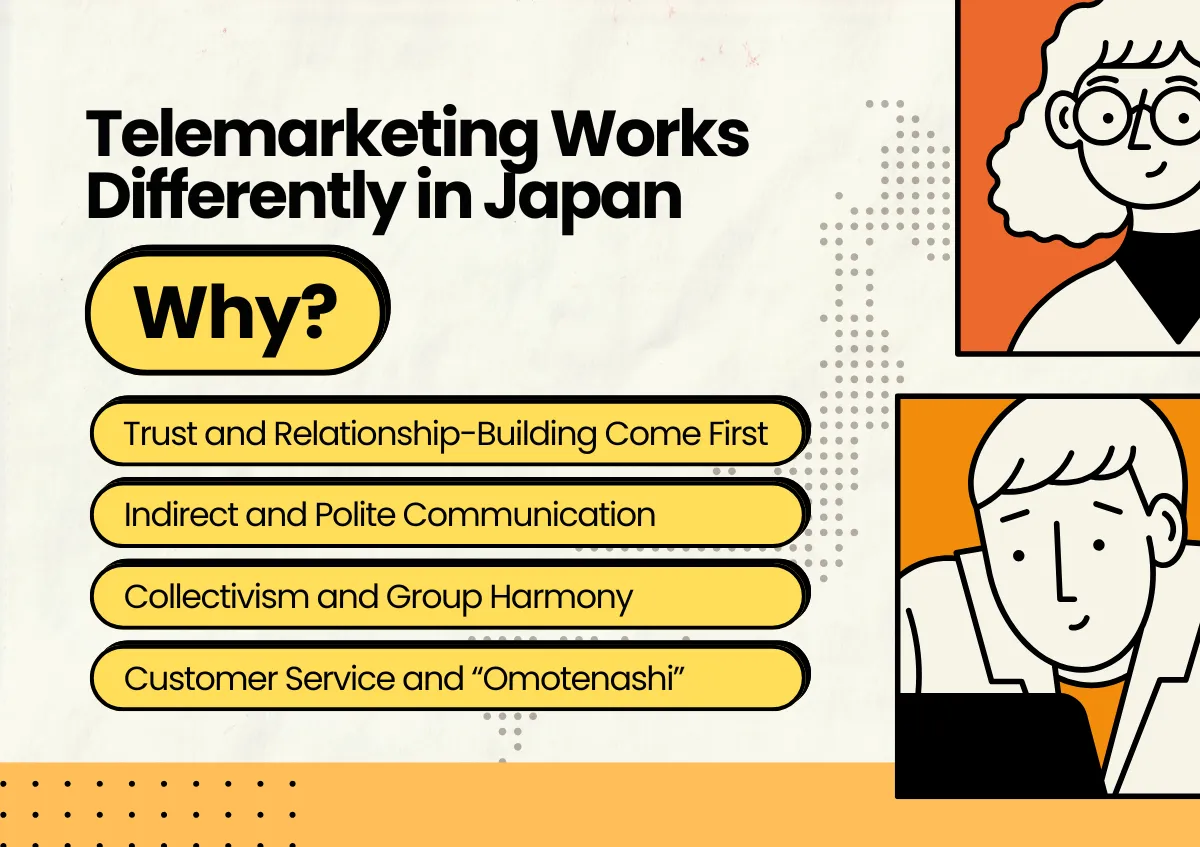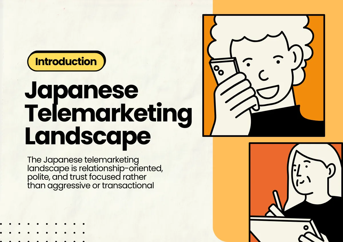 텔레마케팅은 국경을 넘어 비슷해 보일 수 있지만, 일본에서는 확연히 다른 의미를 지닙니다. 일본의 텔레마케팅은 빠른 전환에 초점을 맞추기보다는 인내심, 존중, 그리고 관계 구축을 중시합니다. 외국 기업의 경우, 이는 영업 스크립트뿐만 아니라 어조, 타이밍, 심지어 사용하는 전화번호까지 조정해야 함을 의미합니다. 이 가이드에서는 일본 텔레마케팅의 독특한 특징, 문화적 차이가 아웃리치에 미치는 영향, 그리고 현지 파트너 선정 시 고려해야 할 핵심 사항들을 살펴봅니다. 첫 캠페인을 계획하든,기존 전략을 최적화하고 이러한 차이점을 이해하면 일본 고객과 더욱 강력한 관계를 구축하는 데 도움이 될 것입니다.