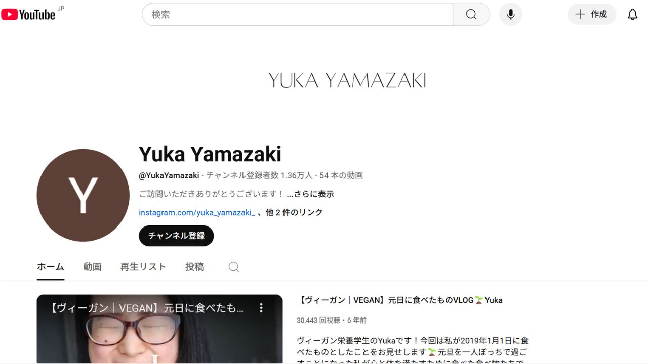 유카 야마자키는 건강에 대한 인식을 높이는 정보를 공유하는 비건 영양 컨설턴트입니다.요리 동영상그녀의 채널은 예산, 간편함, 영양 균형을 강조합니다. 약 14,000명의 구독자를 보유한 이 채널은 가지튀김, 식물성 디저트, 비건 테이크아웃 등 바쁜 사람들, 학생, 또는 일본에서 비건 생활을 처음 시작하는 사람들을 위한 레시피를 제공합니다.