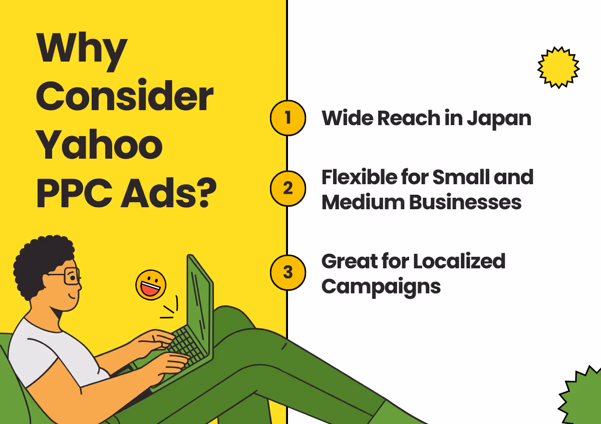 일본에서의 입지를 넓히려는 경우 Yahoo PPC를 고려해 볼 가치가 있습니다.많은 글로벌 마케터에게 Google Ads가 기본 선택일 수 있지만, Yahoo Japan은 뚜렷한 전략적 이점을 제공합니다. 특히 현지 고객과 소통하고 신뢰를 구축하며 가치를 최적화하는 것이 목표인 경우 더욱 그렇습니다.