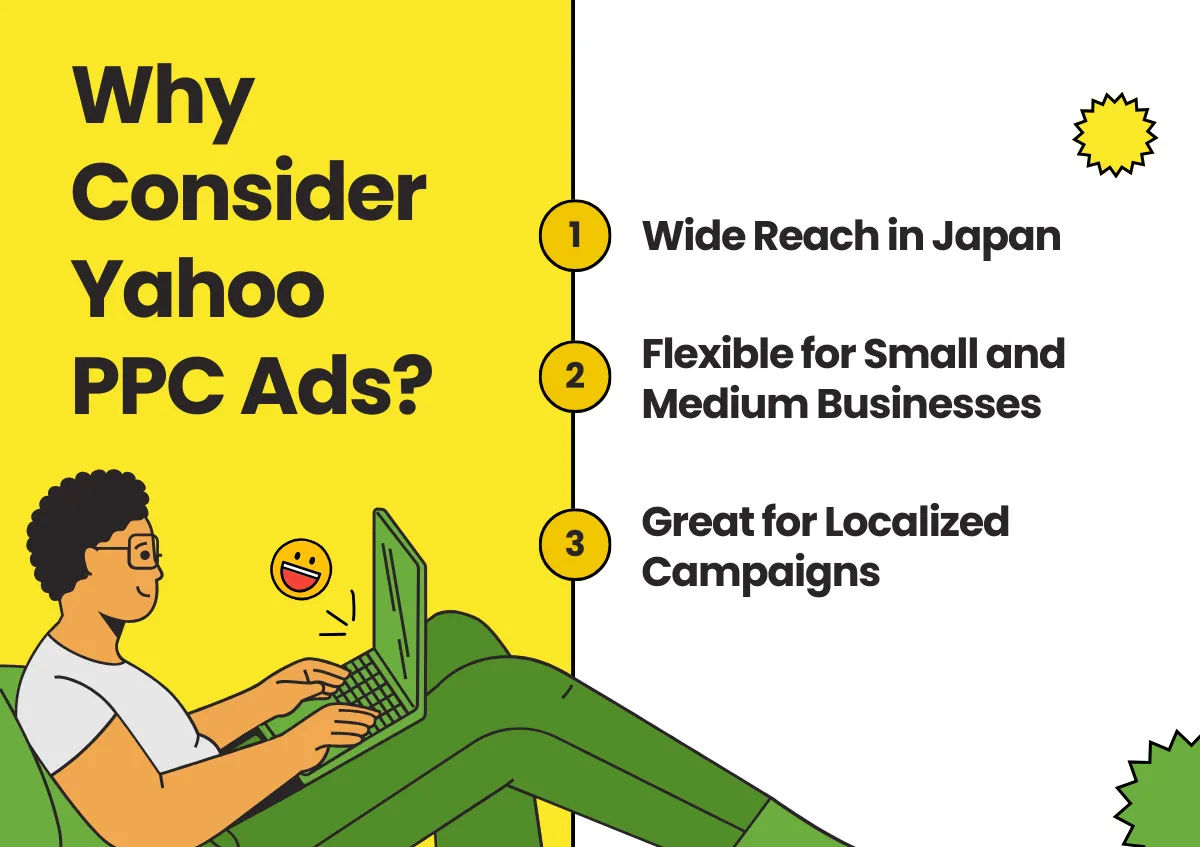 Yahoo PPC는 특히 일본 시장을 겨냥한 현지 타겟팅 B2B 캠페인에 효과적이며, Google로는 달성하기 어려운 수준의 지역적 관련성과 비용 효율성을 제공합니다.