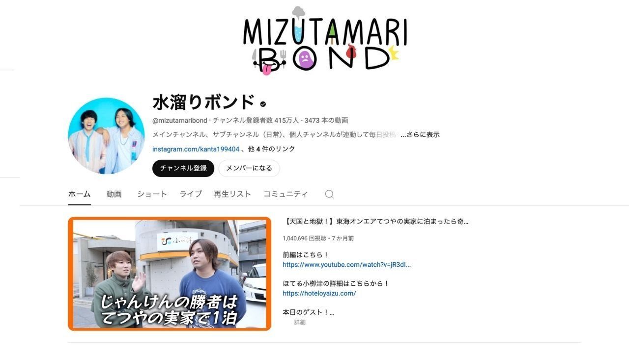 일본의 인기 유튜버 듀오, 칸타와 토미로 구성된 '미즈타마리 본드'는 특유의 코믹한 감각과 독창적인 콘텐츠로 수많은 시청자들의 마음을 사로잡았습니다. 실험, 챌린지, 몰래카메라, 콩트 등 다채로운 장르를 넘나드는 그들의 채널은 매일 신선하고 재미있는 영상을 선보입니다. 높은 수준의 제작 퀄리티와 예측 불가능한 반전으로 시청자들에게 끊임없는 웃음과 놀라움을 선사하며, 꾸준히 채널을 찾게 만듭니다. 칸타와 토미는 단순히 재미있는 콘텐츠 제작을 넘어 시청자들과의 소통을 중요시하며, 탄탄한 유대감과 충성도를 바탕으로 오랜 시간 동안 꾸준히 인기를 유지해 왔습니다. 창의성, 유머, 그리고 헌신적인 노력이 어우러진 그들의 모습은 일본 유튜버 커뮤니티에서 독보적인 존재감을 만들어냅니다.